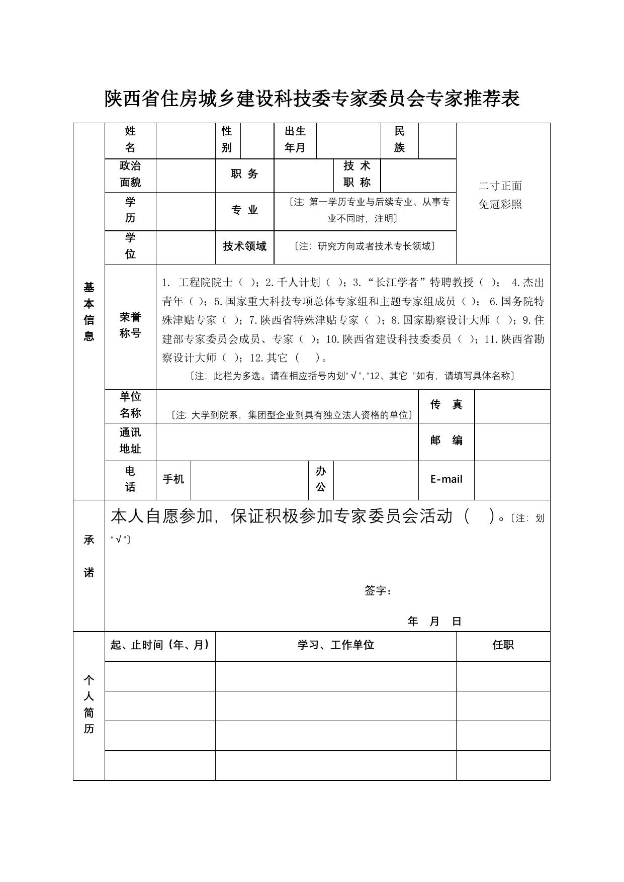 长安大学公路学院附件1:《陕西省住房城乡建设科技委专家委员会专家推荐表》.doc