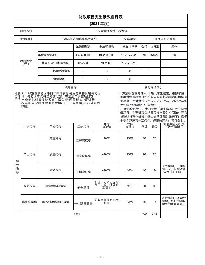 上海商业会计学校2021年度财政项目支出绩效自评表.pdf