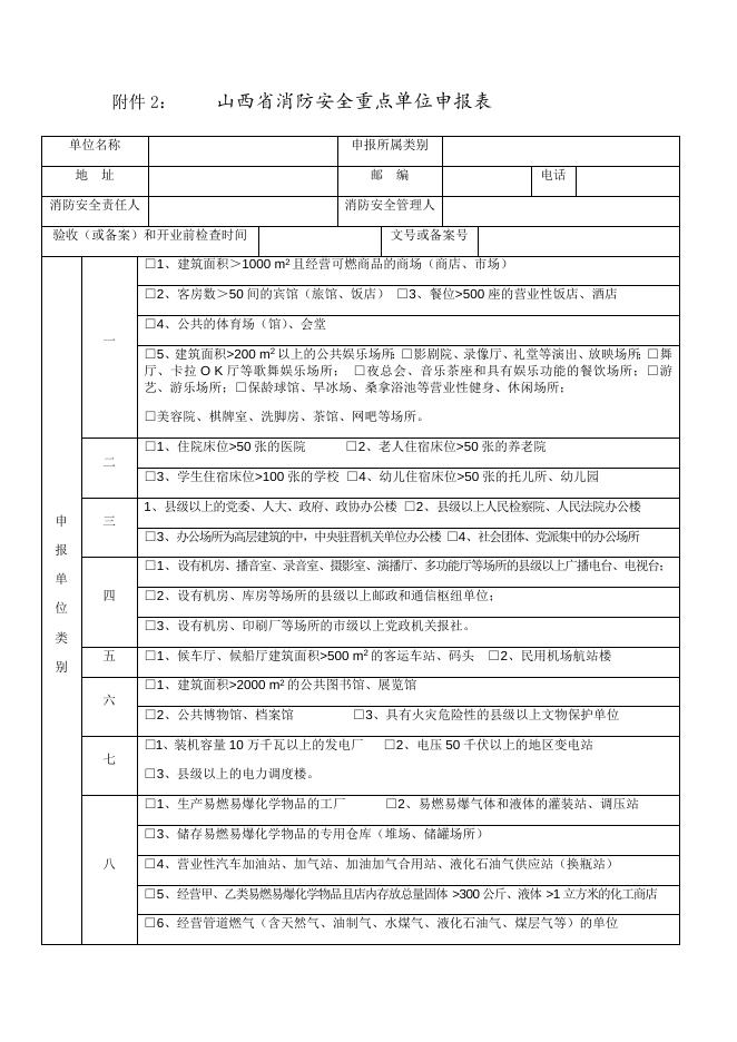 附件2:山西省消防安全重点单位申报表.docx