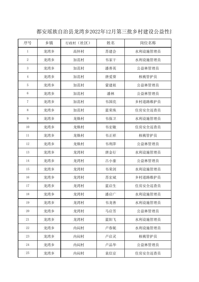 都安瑶族自治县龙湾乡2022年12月第三批乡村建设公益性岗位资金发放花名册.xlsx