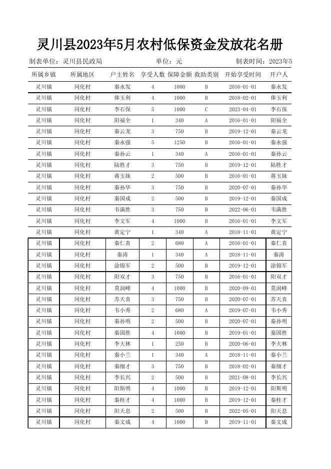 2023年5月灵川县农村低保金发放户主花名册.xlsx
