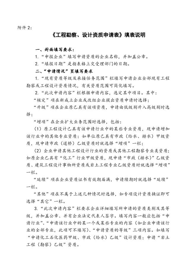 附件2:《工程勘察、工程设计资质申请表》填表说明.doc