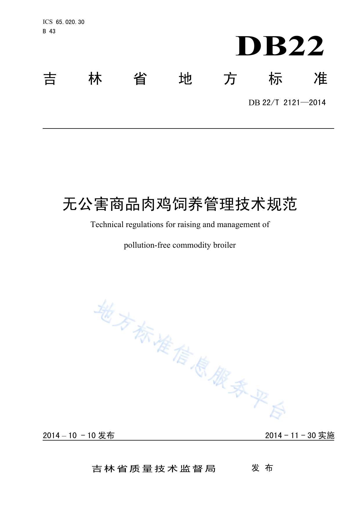 无公害商品肉鸡饲养管理技术规范