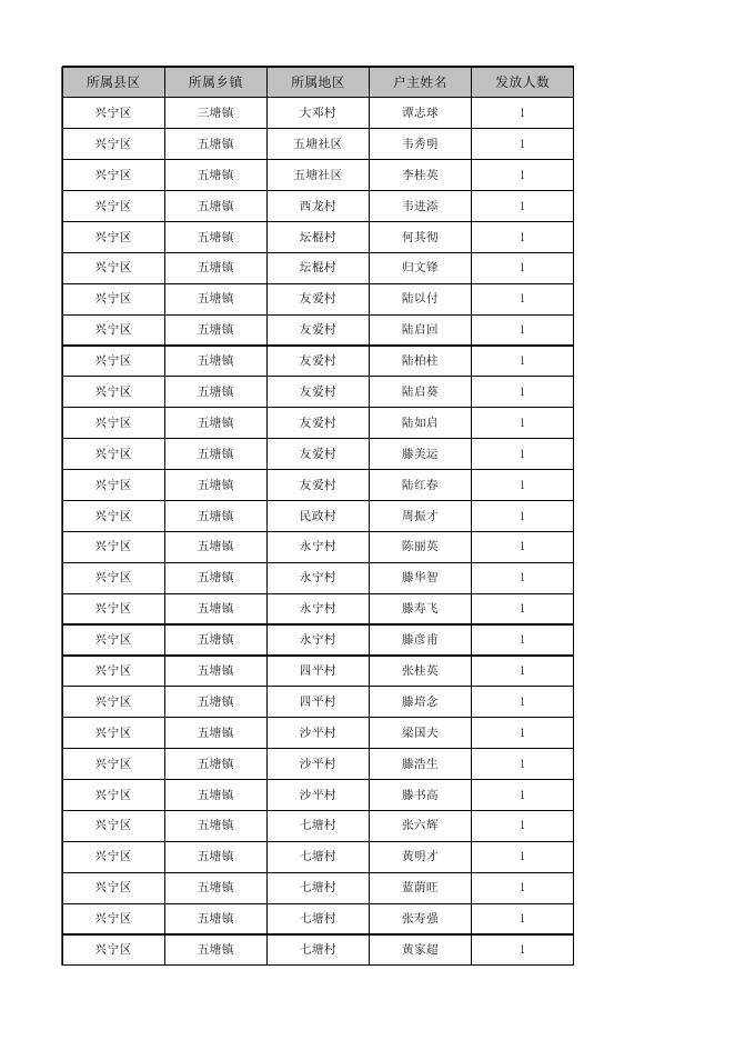 2023年1月兴宁区农村集中供养特困金发放第一批户主花名册.xls