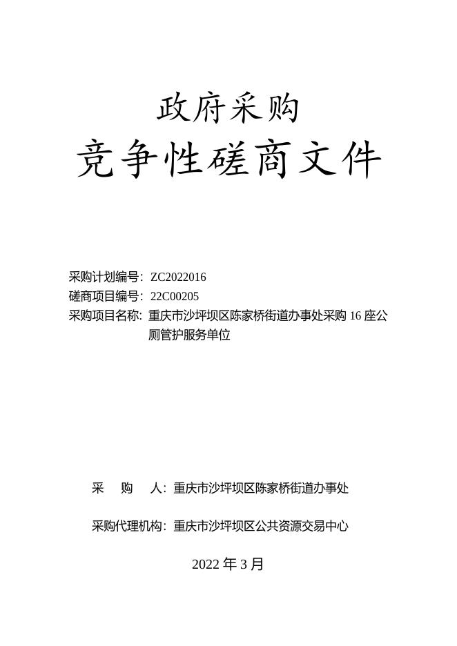 重庆市沙坪坝区陈家桥街道办事处采购16座公厕管护服务单位.doc