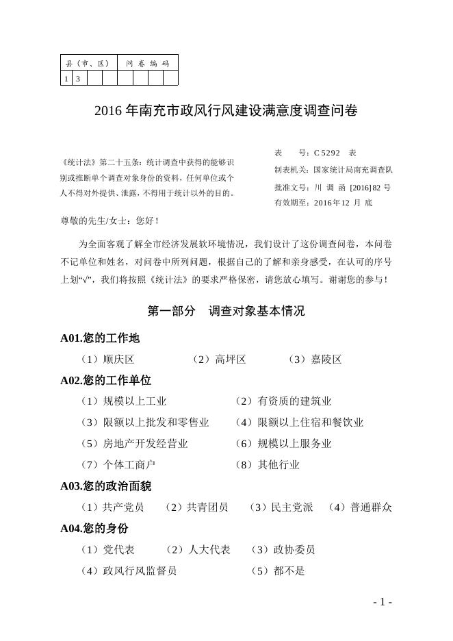 2016年南充市政风行风满意度调查卷(11.09)最新.doc