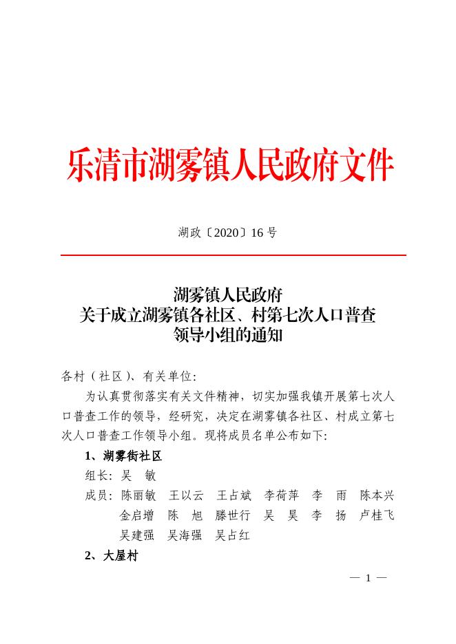 湖政〔2020〕16号关于成立湖雾镇各社区、村第七次人口普查领导小组的通知.pdf