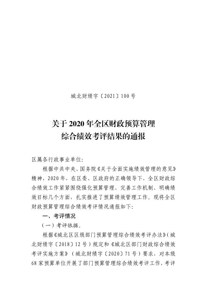 关于2020年全区财政预算管理综合绩效绩效考评结果的通报.pdf