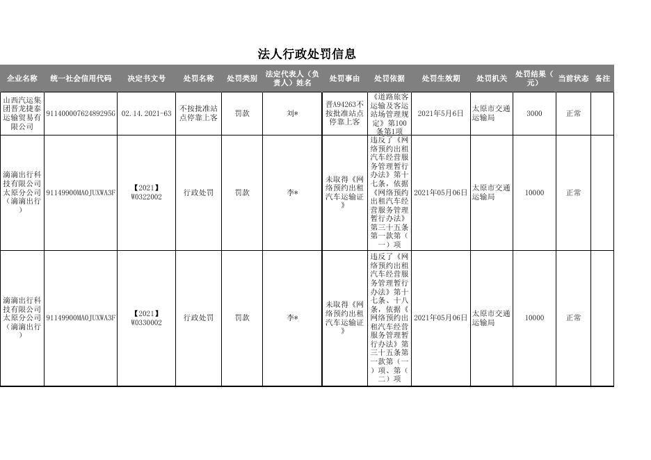 太原市交通运输局2021年5月行政处罚结果公示(法人).xls