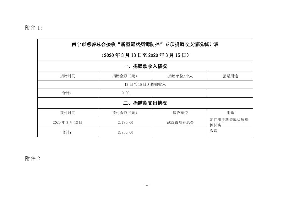 附件 南宁市慈善总会接收 新型冠状病毒防控 专项捐赠收支情况统计表 2020年3月13日至2020年3月15日.pdf