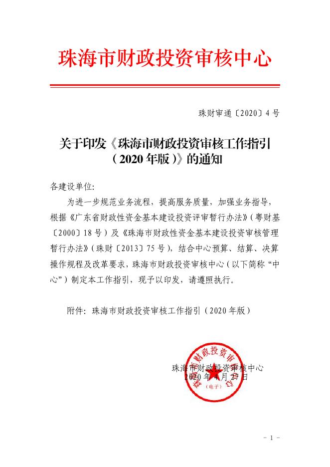 关于印发《珠海市财政投资审核工作指引(2020年版)》的通知(珠财审通[2020]4号).pdf