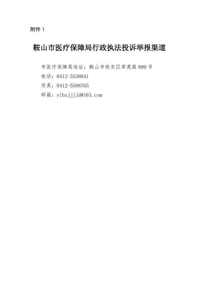 鞍山市医疗保障局行政执法投诉举报渠道.docx
