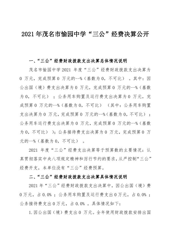 2021年茂名市愉园中学“三公”经费决算公开.pdf