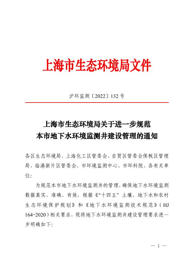上海市生态环境局关于进一步规范本市地下水环境监测井建设管理的通知_其他文件_上海市生态环境局.pdf