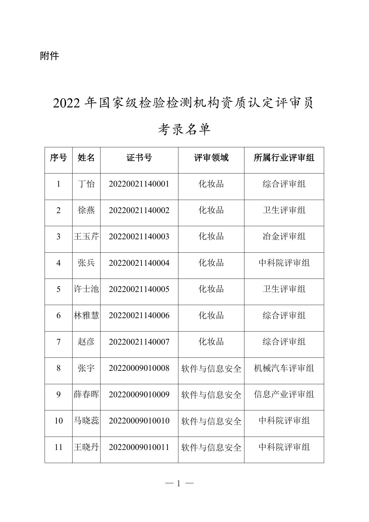 2022年国家级检验检测机构资质认定评审员考录名单.docx