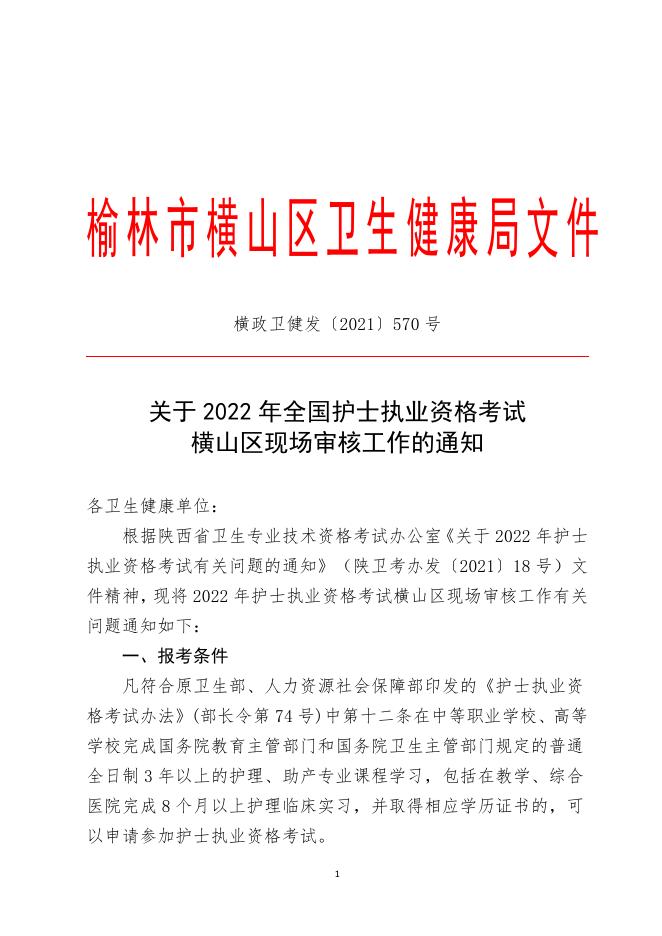卫健发570号关于2022年全国护士执业资格考试横山区现场审核工作的通知.pdf