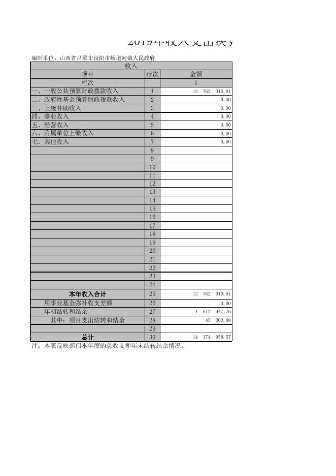 汾阳市峪道河镇人民政府2019年部门决算公开表.xls