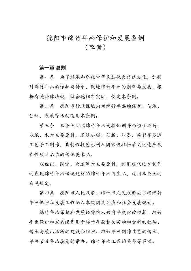 德阳市绵竹年画保护和发展条例(草案).doc