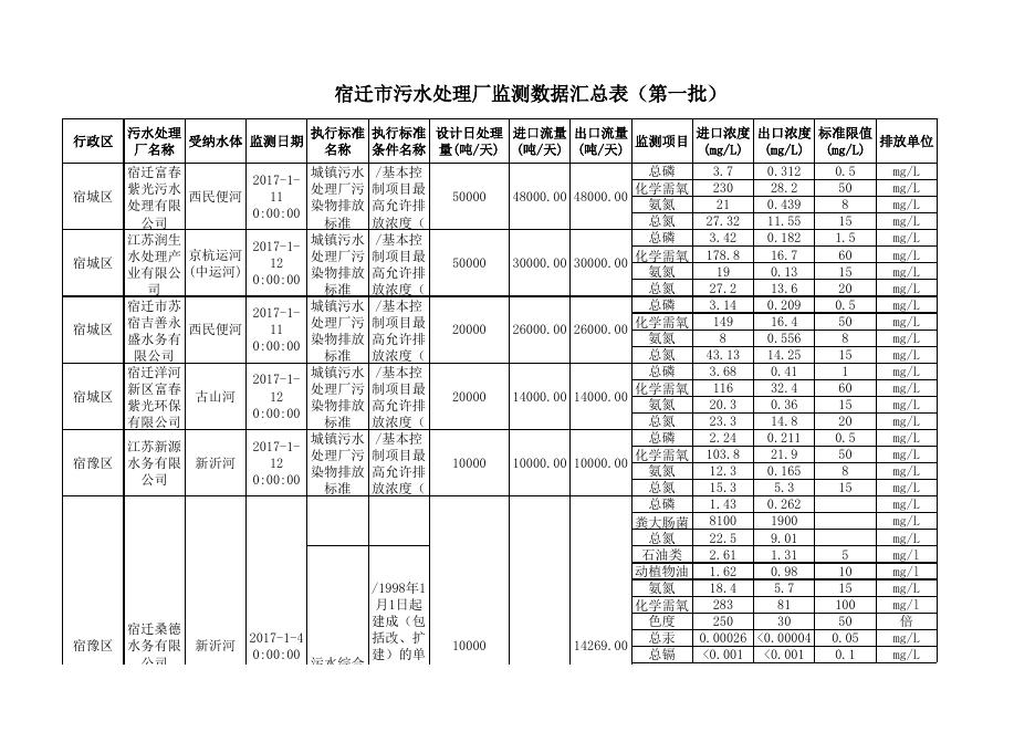 2017年第一季度污水处理厂监测数据(第一批).xls