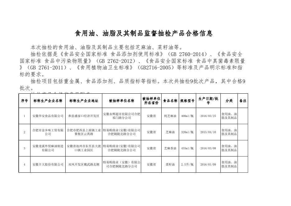 食用油、油脂及其制品监督抽检产品合格信息.xls