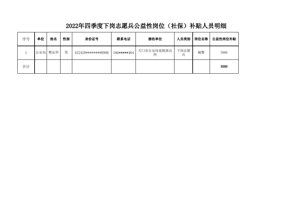 2022年4季度下岗志愿兵公益性岗位补贴人员明细.xls