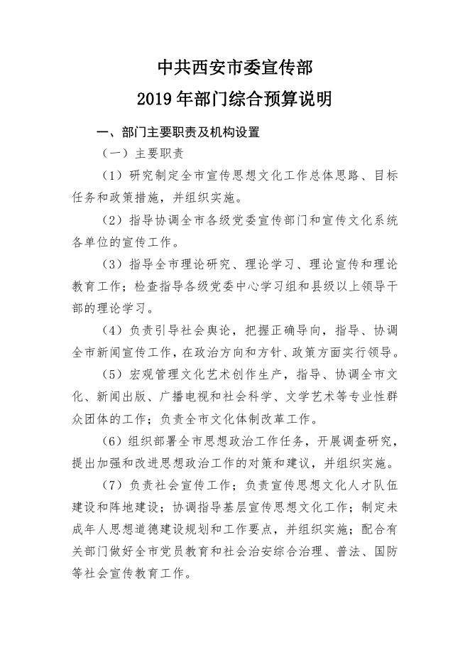 中共西安市委宣传部2019年部门综合预算说明 .pdf