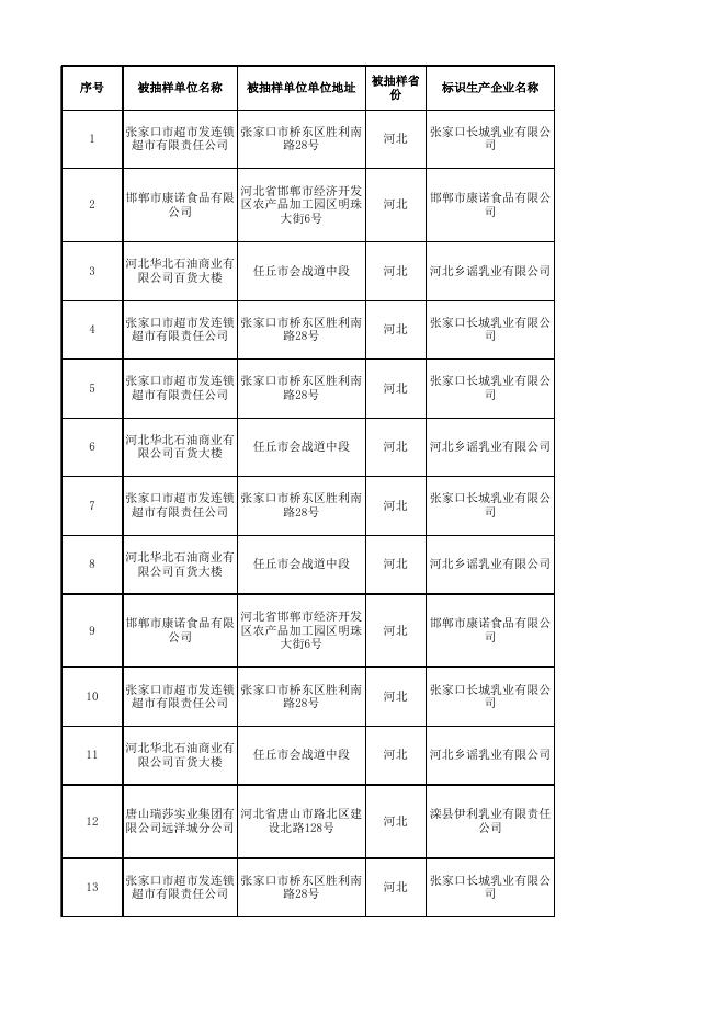 河北省市场监督管理局关于河北省本级食品安全监督抽检信息的公告.xlsx