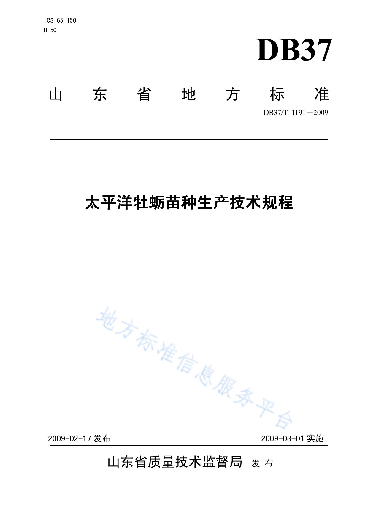 太平洋牡蛎苗种生产技术规程