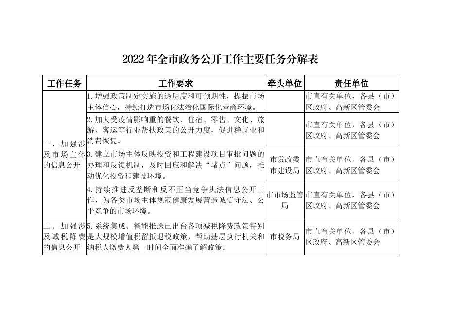 2022年全市政务公开工作主要任务分解表.doc