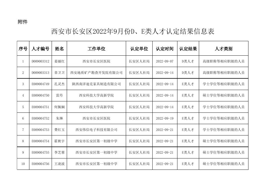 西安市长安区2022年9月份D、E类人才认定结果信息表.xls