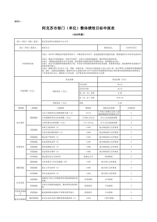 157、阿克苏地区阿克苏市拜什吐格曼乡中心小学2023年部门单位整体支出绩效目标表.pdf
