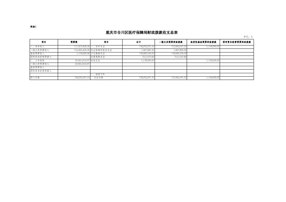 重庆市合川区医疗保障局2020年部门预算社会公开表.xls