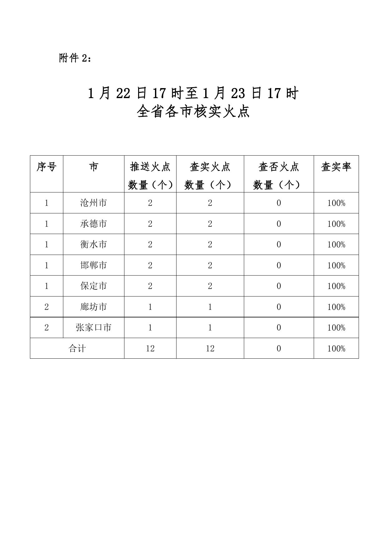 附件2:1月22日17时至1月23日17时全省各市火点核实数量.doc
