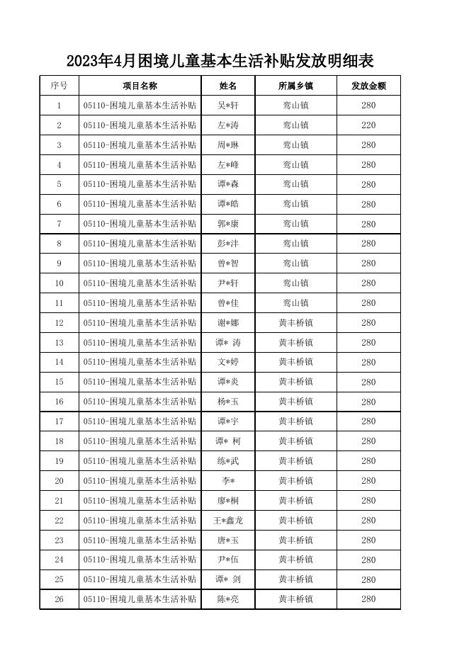4月份困境儿童生活补助发放明细公示.xlsx