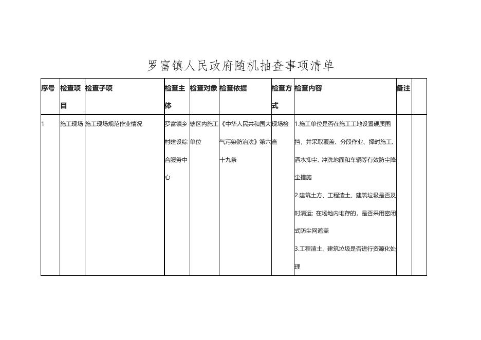 罗富镇人民政府随机抽查事项清单.doc