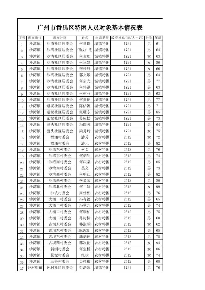 广州市番禺区2019年9月特困供养对象公示表.xls