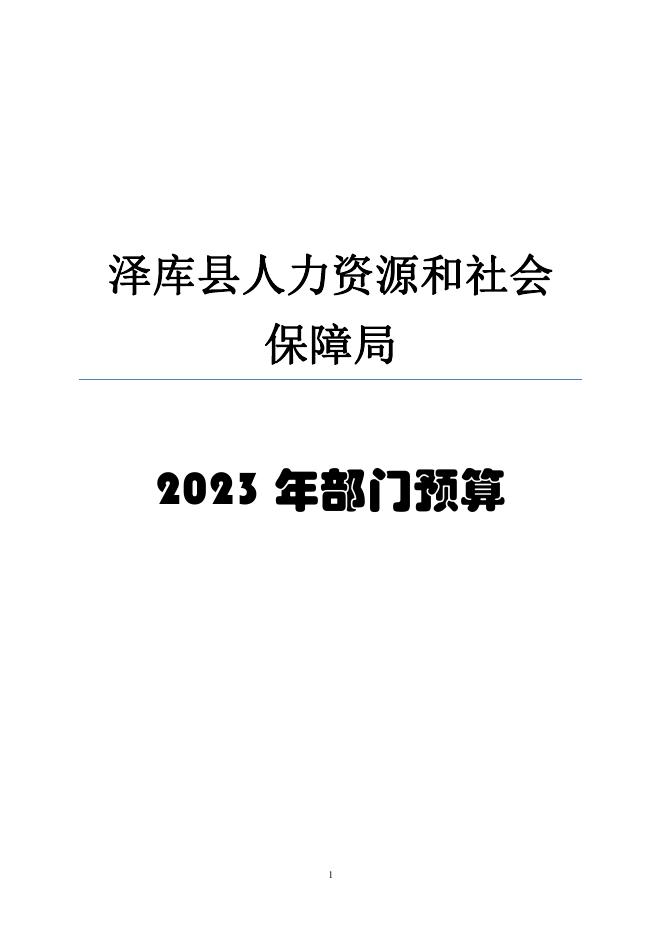 泽库县人力资源和社会保障局(汇总)2023年度部门预算.pdf