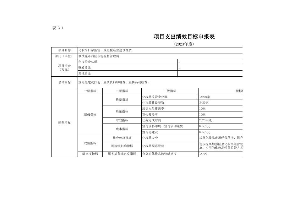 2023年区市场监管局项目支出绩效目标申报表.xlsx