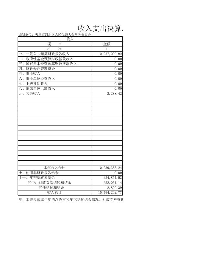天津市河北区人民代表大会常务委员会2020年度部门决算和“三公”经费决算公开表XLS.xls