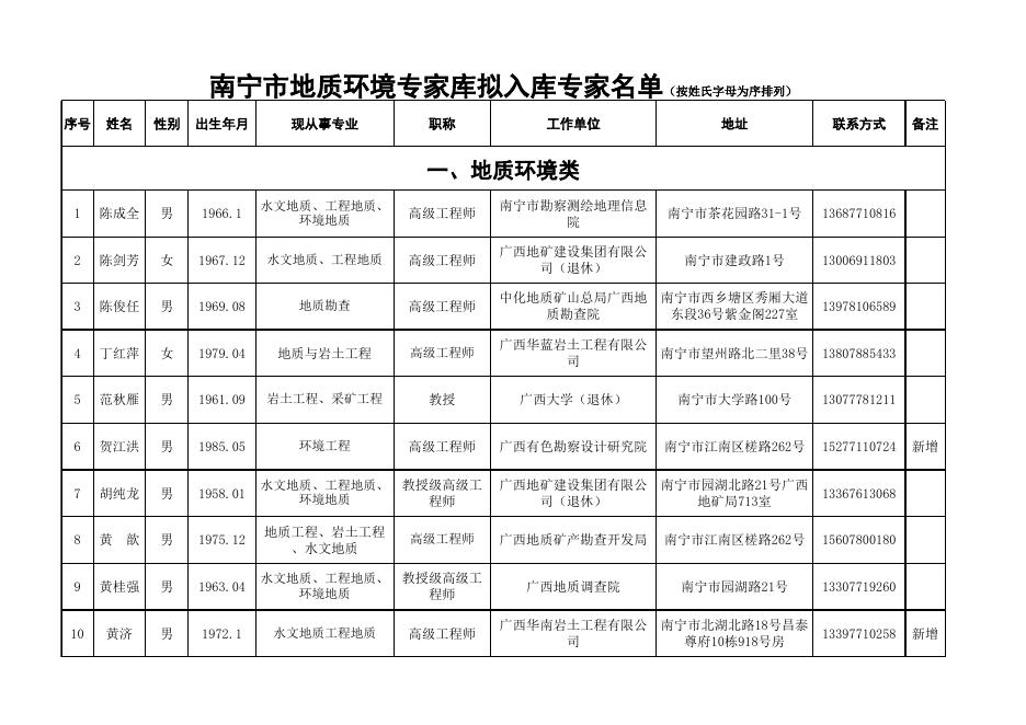 南宁市地质环境专家库拟入库专家名单.xlsx
