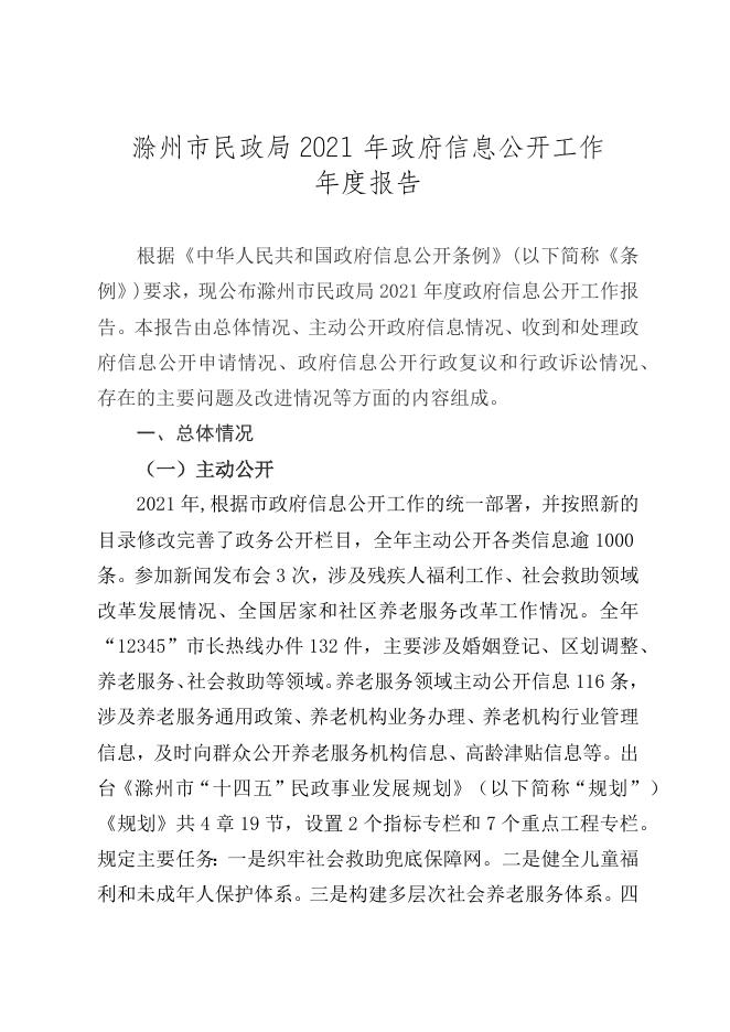 滁州市民政局2021年政府信息公开工作年度报告.docx