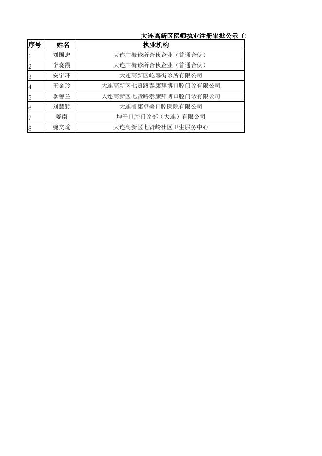 大连高新区医师执业注册审批公示(2023年02月01日—02月15日).xlsx