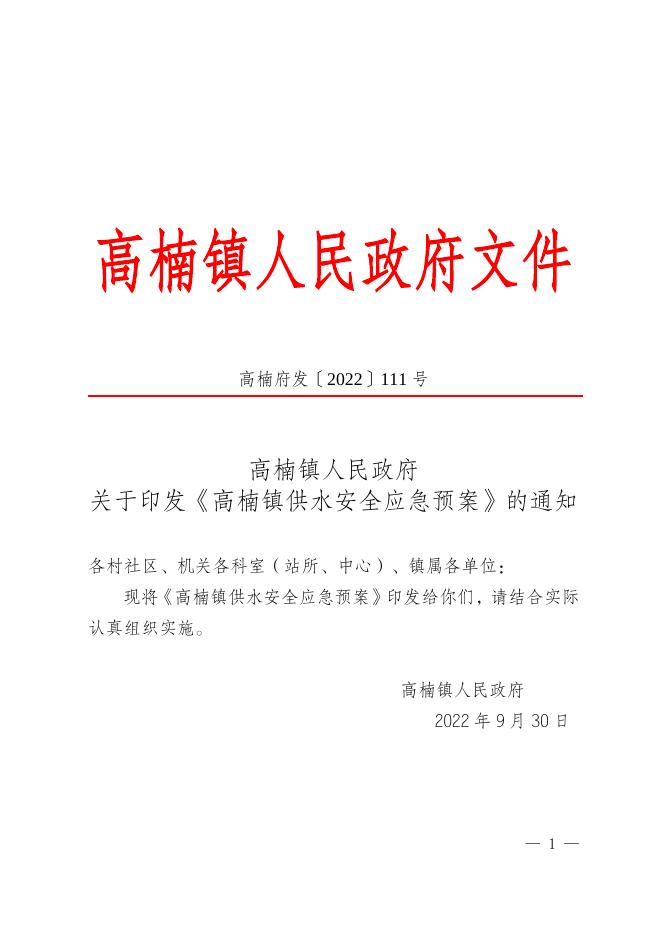 高楠府发〔2022〕111号关于印发《高楠镇供水安全应急预案》的通知.doc
