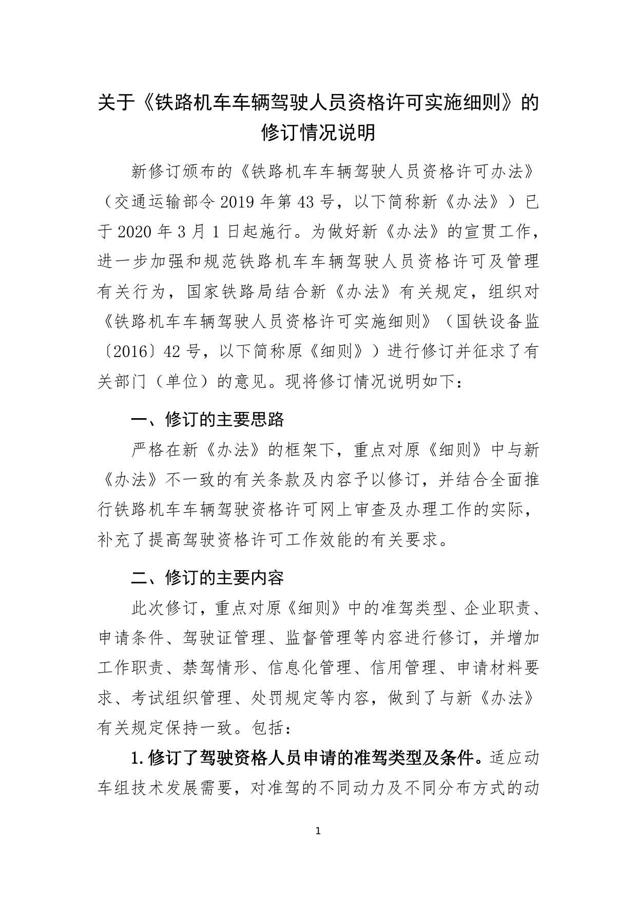 关于《铁路机车车辆驾驶人员资格许可实施细则》的修订情况说明.doc