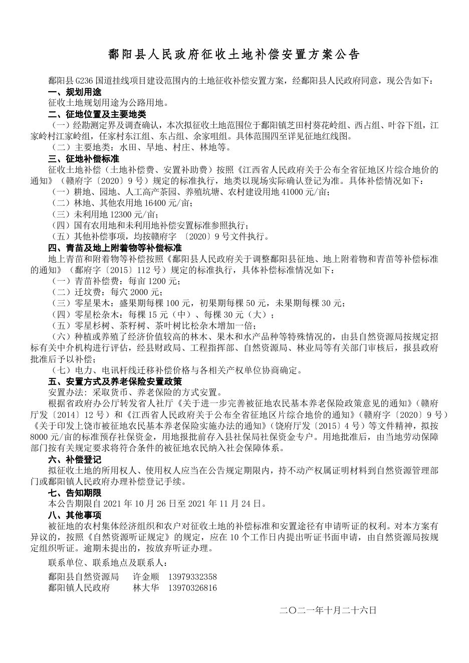 鄱阳县G236国道挂线建设工程建设用地征地补偿安置方案公告.docx