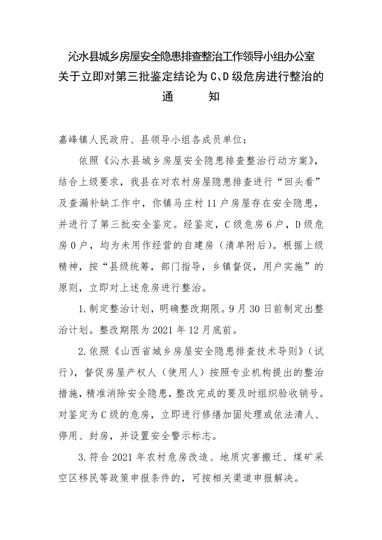 关于对第三批鉴定为危房的房屋进行整治的通知.doc