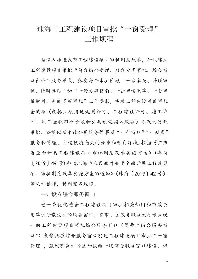 珠海市工程建设项目审批“一窗受理”工作规程.doc