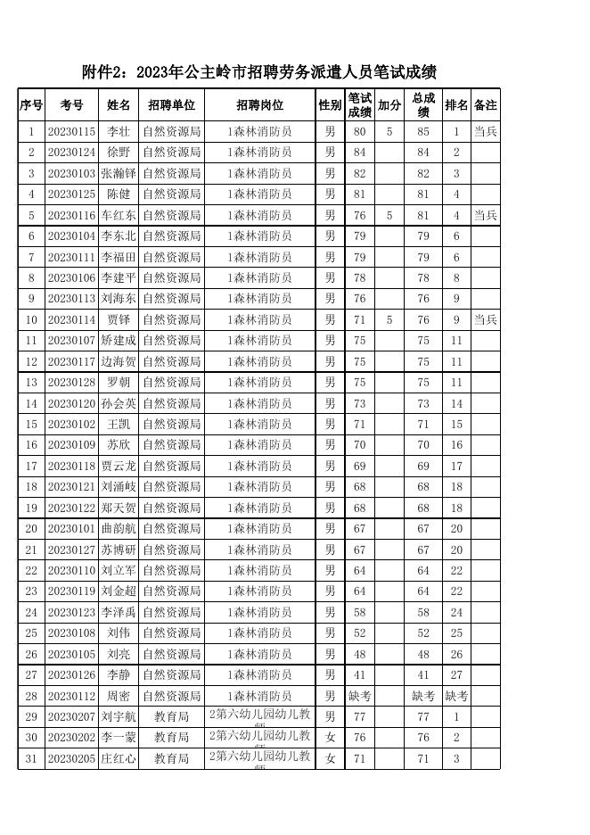 附件2:2023年公主岭市招聘劳务派遣人员笔试成绩.xls
