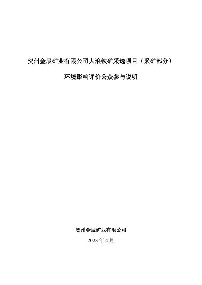 贺州金辰矿业有限公司大浪铁矿采选项目(采矿部分)环境影响评价公众参与说明.pdf