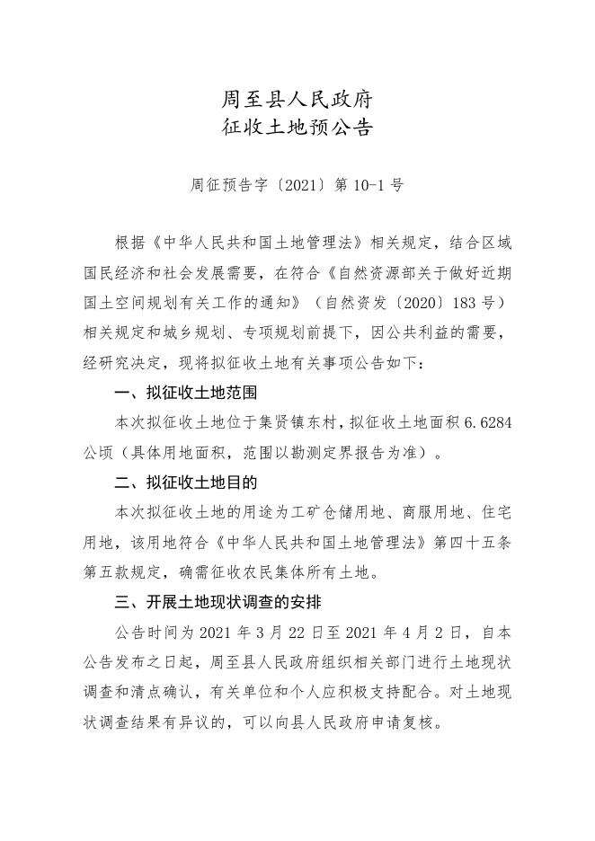 土地征收预公告(周征预告字〔2021〕第10-1号)——集贤镇东村.doc